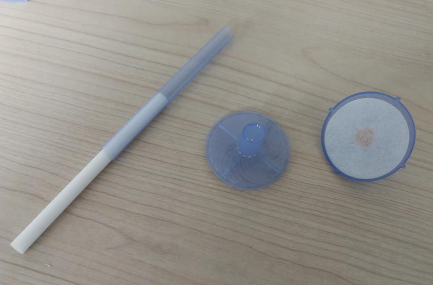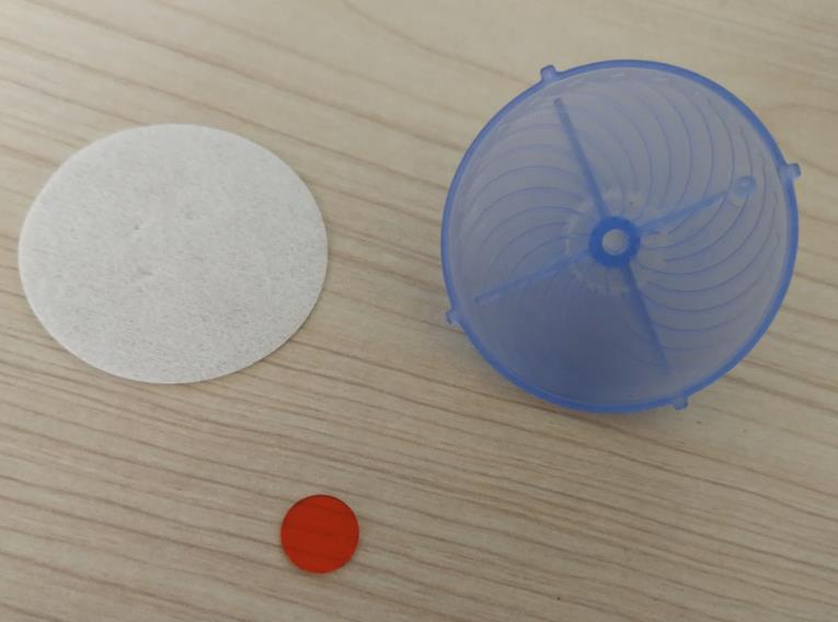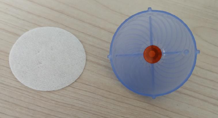 本項(xiàng)目共完成6個零件的自動裝配,其中有2個注塑件上傘蓋下傘蓋,一PVC片直徑11.5mm厚0.9mm名稱分流片,一直徑40mm無紡布片名稱濕化體,一段導(dǎo)水殼一段導(dǎo)水芯。自動裝配過程:轉(zhuǎn)盤式多工位方式,涉及到兩個塑料料扣合,導(dǎo)水芯導(dǎo)水殼插裝,濕化體模切后自動就位。